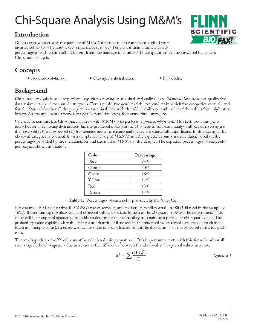 Chi Square Analysis Using M M S Flinn Scientific